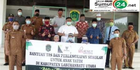 Labura ( sumut24.net ) - Pemerintah Provinsi Sumatera Utara melalui Baznas Provinsi Sumatera Utara memberikan bantuan kepada anak-anak yatim, bantuan diserahkan langsung oleh Bupati Labuhanbatu Utara H Kharuddin Syah, SE, di damping Ketua Baznas Labura Sukisman, SSos, beserta anggota Baznas di halaman Kantor Bupati Labura, Senin 13/4/2020.