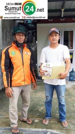 Seorang penerima atas nama Abdul Rajab yang dirumahkan oleh salah satu Hotel di Pekanbaru akibat Covid-19, sangat sumringah ketika Driver Ojek Online datang ke rumahnya.