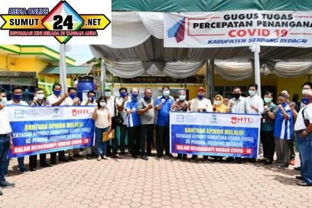 Sergai (sumut24.net) - Ketua Gugus Tugas Covid-19 Kabupaten Sergai Ir H Soekirman menerima bantuan dari Asosiasi Pengusaha Indonesia (APINDO) Sumatera Utara bersama DPK Apindo Sergai di Posko Gugus Tugas Covid-19 Sergai Rumah Dinas Bupati di Sei Rampah, Rabu (13/5).