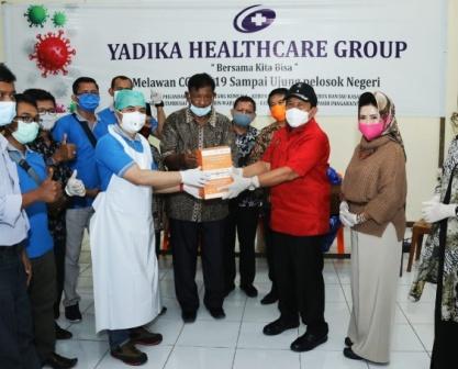 Meski telah melakukan Rapid Tes dengan hasil Negatif, Bupati dan Ketua TP PKK Rohul kembali melakukan Rapid Tes, Tim Medis dari Yadika Healthcare Group dari Jakarta ini mengambil sampel darah Ketua TP PKK Rohul untuk dilakukan Rapid Tes.