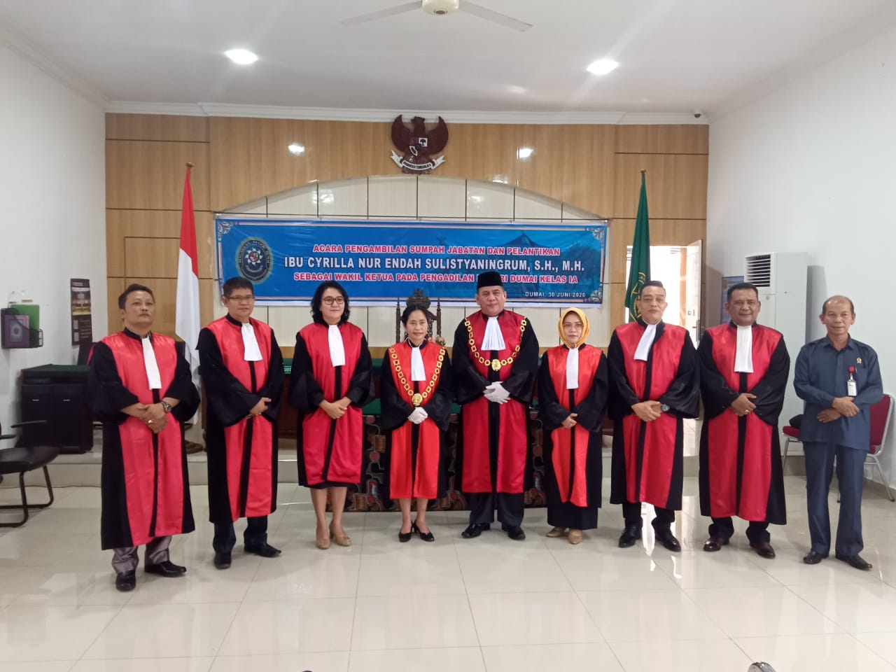 Ketua PN Dumai Hendri Tobing yang melantik Cyrilla Nur Endah Sulistyaningrum SH MH sebagai Wakil Ketua PN Dumai melalui humas PN Dumai Renaldo MH Tobing SH MH usai acara mengatakan, Wakil Ketua yang baru dilantik sebelumnya bertugas sebagai Ketua Pengadilan Negeri Kelas IB di Purwodadi.