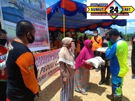 Selain turun langsung menemui warga, Kapolres Rohul juga memberikan bantuan 50 sak