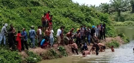 Setelah warga melakukan pencarian dengan alat seadanya sekira pukul 11.30 WIB, pertama yang ditemukan adalah korban E Br M dengan tubuh telah membiru dan sempat di bawa ke RS namun nyawanya tidak tertolong lagi.