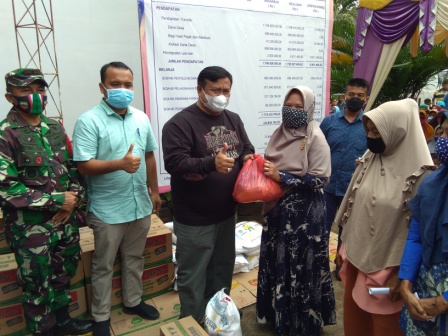 Bupati juga menyampaikan pembagian sembako tahap II pagi ini ada tiga titik,Kelurahan Gunting Saga ada 1097 kk, Desa Bandar Lama 480 kk dan Desa Sidua - Dua 564 kk.