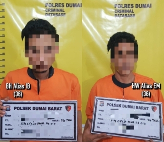 Pelaku narkoba yang diamankan Aparat Kepolisian Jajaran Polres Dumai tersebut ialah BH Alias IB (36) warga Kelurahan Rimba Sekampung Kecamatan Dumai Kota dan HW Alias EM (36) warga Kelurahan Dumai Kota Kecamatan Dumai Kota.