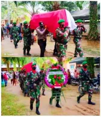 Kegiatan pemakaman Koptu Zuwandri yang diselimuti suasana haru dilaksanakan secara militer di pemakaman keluarga yang berada di Desa Sontang Kecamatan Bonai Darussalam Kabupaten Rokan Hulu, Riau.