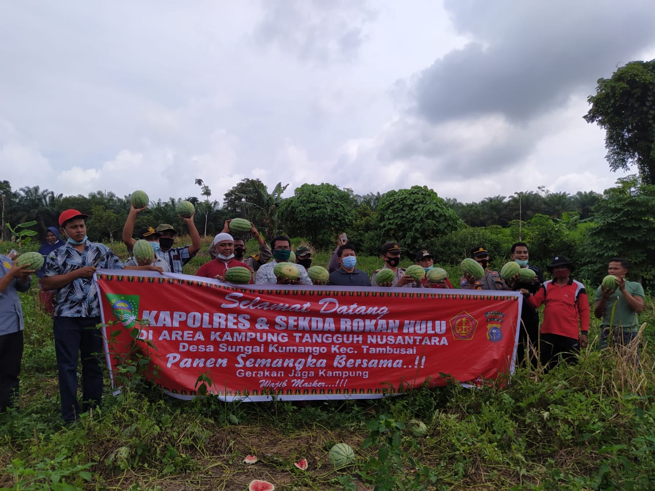 Rohul ( sumut24.net ) - Program “Jaga Kampung” yang ditaja Polres Rohul di Desa Sei Kumango Kecamatan Tambusai Kabupaten Rokan Hulu - Riau , sabtu (30/01) mengadakan panen raya Semangka.