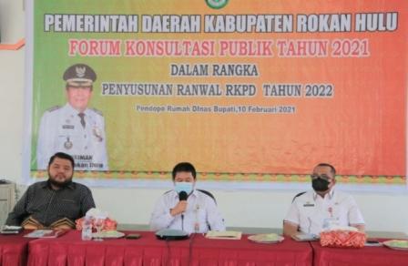 Rohul ( sumut24.net ) - Dalam rangka Penyusunan Rencana Awal (Ranwal) RKPD untuk tahun 2022, Bupati Rokan Hulu H. Sukiman yang diwakili oleh Sekdakab Rohul H. Abdul Haris S.Sos M.Si secara resmi buka Forum Konsultasi Publik (FKP) Tahun 2021, Rabu (10/02/2021).