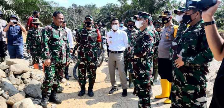 Labura ( sumut24.net ) - Wakil Bupati Labuhanbatu Utara H Samsul Tanjung, ST, MH, mendampingi Tim Pengawas dan Evaluasi (Wasev) dari Markas TNI Brigjen TNI Nefra Firdaus SE,MM, beserta rombongan untuk meninjau pos pelaksanaan TMMD ke-110 Kodim 0209 LB di dusun Pematang baru Desa Pematang Kecamatan NA IX - X Kabupaten Labuhanbatu Utara, rabu (10/3/2021) siang.