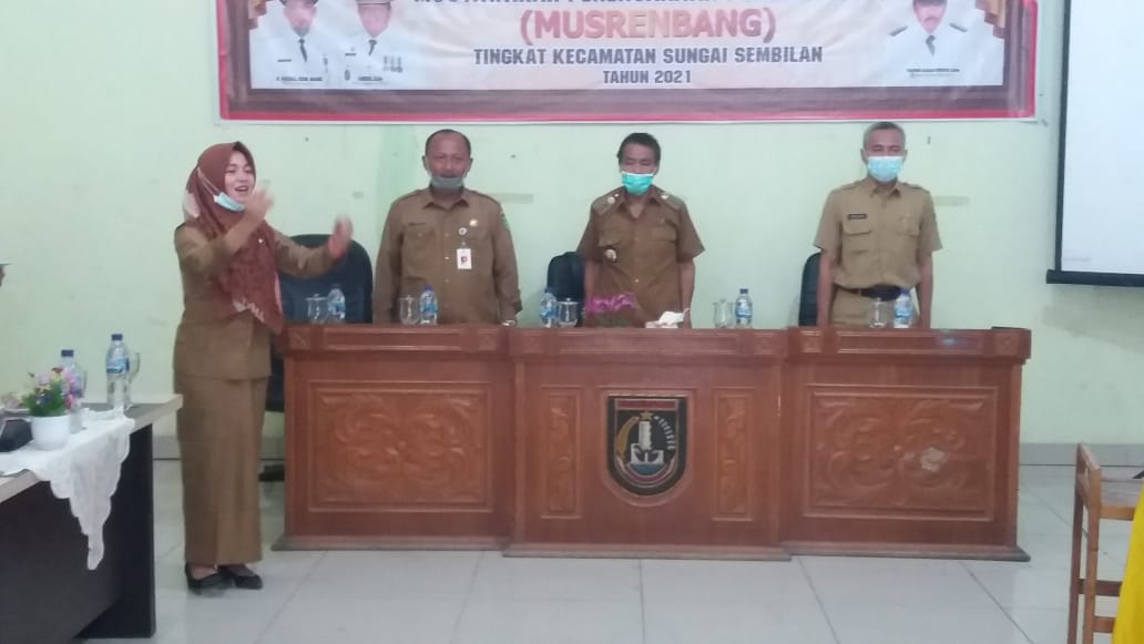 " Terimakasi kepada semua instansi yang hadir di kegiatan musrenbang Kecamatan Sungai Sembilan tahun 2021 ini , dengan adanya musrenbang ini diharapkan dapat menjaring aspirasi masyarakat tentang kebutuhan pembangunan tahun 2022 , sehingga dalam pelaksanaan pembangunan daerah akan tepat sasaran dan sesuai kebutuhan masyarakat " Urai Camat Sungai Sembilan Tanwir Azhar Efendi , S.Sos.