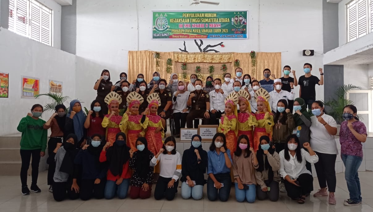 Medan ( sumut24.net ) - Seksi Penerangan Hukum Kejaksaan Tinggi Sumatera Utara menggelar acara Penyuluhan Hukum dalam Program Jaksa Masuk Sekolah di SMA N 8 Medan , rabu (24/03/2021) tepatnya di Jalan Sampali Medan.