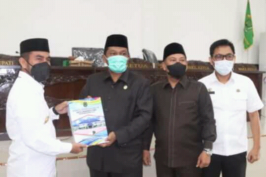 Rapat paripurna di tutup dengan penyerahan berkas nota pengantar LKPJ Bupati Labuhanbatu Utara tahun anggaran 2020 oleh Wakil Bupati Samsul Tanjung kepada Ketua DPRD Labura Indra Surya Bakti Simatupang disaksikan Wakil Ketua dan Sekwan, serta anggota DPRD.