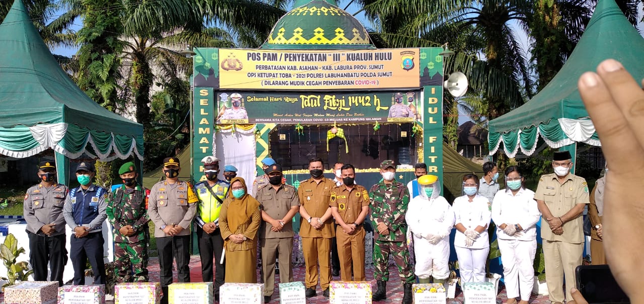Operasi ketupat, pos pam penyekatan "III" Kualuh Hulu tahun 2021 melibatkan aparat gabungan dari Polri, TNI,Satpol PP dan Dinas Perhubungan.