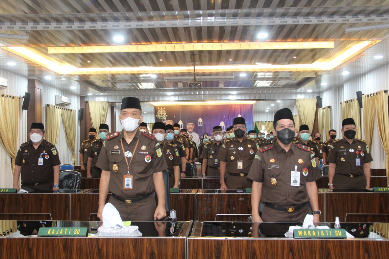 Halal Bihalal Jaksa Agung RI secara Virtual diikuti oleh Kepala Kejaksaan Tinggi Sumatera Utara IBN Wiswantanu, Wakil Kepala Kejaksaan Tinggi Sumatera Utara Agus Salim, Asbin Nasril SH.MH ,Asintel DR Dwi Setyo Budi Utomo, Aspidum DR Sugeng Riyanta, Aspidsus M Syarifuddin, Asdatun DR Prima Idwan Mariza, Aswas RM Ari Priyoagung, para Koordinator, Jaksa, dan Pegawai Tata Usaha.