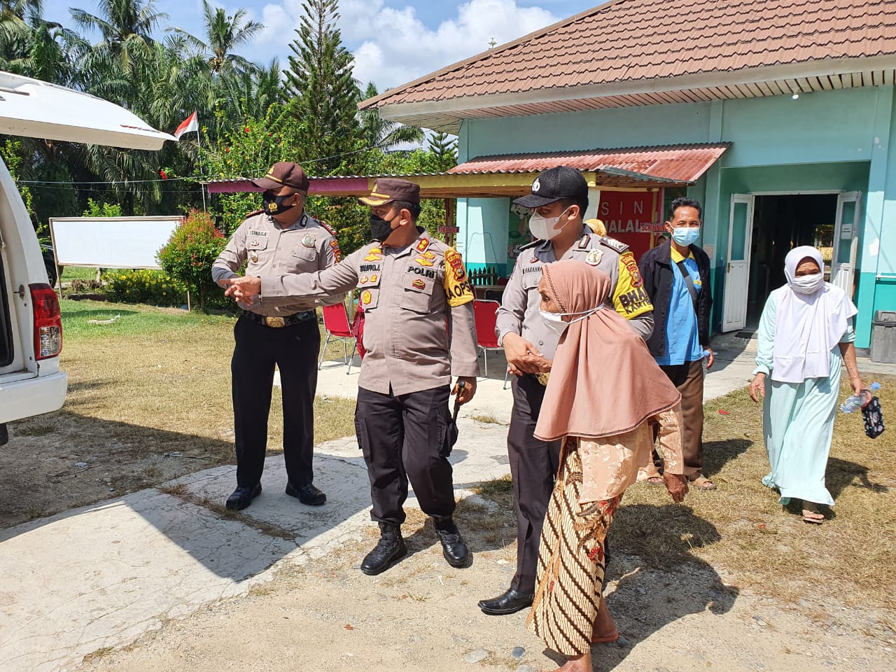 Awalnya Kapolsek Tandun AKP S. Sinaga SH bersama dengan Bhabinkamtibmas Bripka Munir Harahap di dampingi oleh Pihak Puskesmas UPT I Tandun menjemput nenek lansia di rumahnya untuk melaksanakan Vaksinasi di Puskesmas Tandun