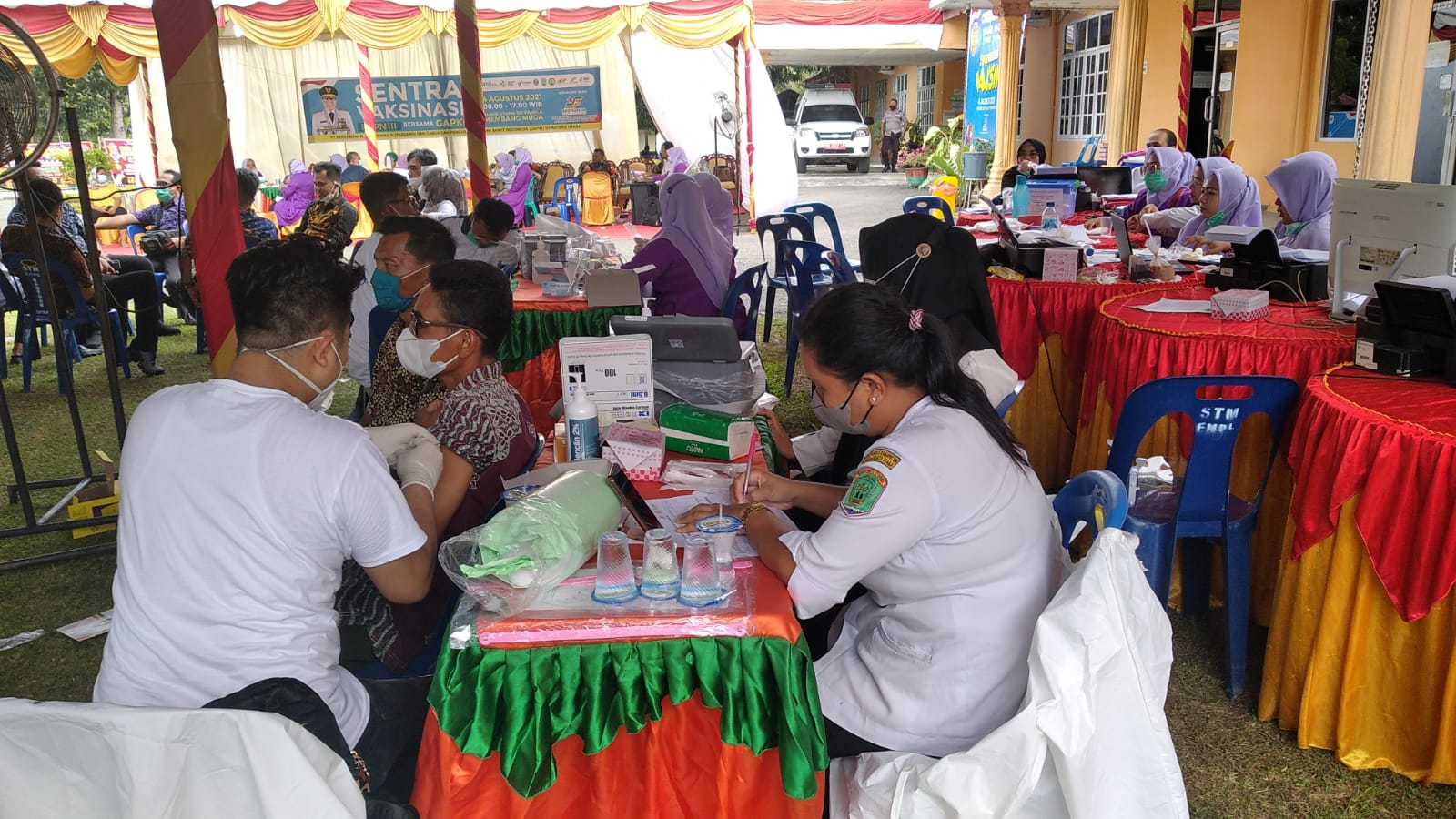 Acara Vaksinasi yang digelar PTPN III dan GAPKI yang dilaksanakan di FKTP Mambang Muda yang di ikuti khusus karyawan, juga melibatkan unsur TNI dan Polri dalam pengaman kegiatan. Pelaksanaan kegiatan vaksinasi ini tetap menjalankan protokol kesehatan dalam penanganan Covid-19, seperti mencuci tangan, menjaga jarak, memakai masker dan menghindari kerumunan.