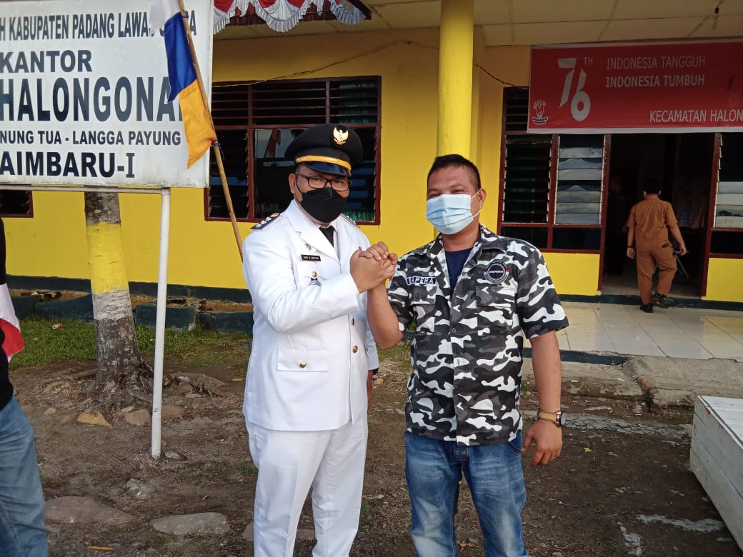 Camat Halongonan Amir Hakim Siregar, SSTP.M.Si bertindak sebagai Inspektur Upacara pada peringatan Detik-Detik Proklamasi 17 Agustus 2021 yang ke 76 , di halaman kantor Camat Halongonan .