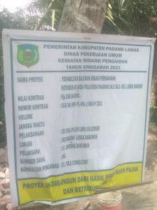 Salah Satu Kegiatan Bidang Pengairan TA.2021 Kabupaten Palas , Sampai 30 Desember 2021 Belum Tuntas