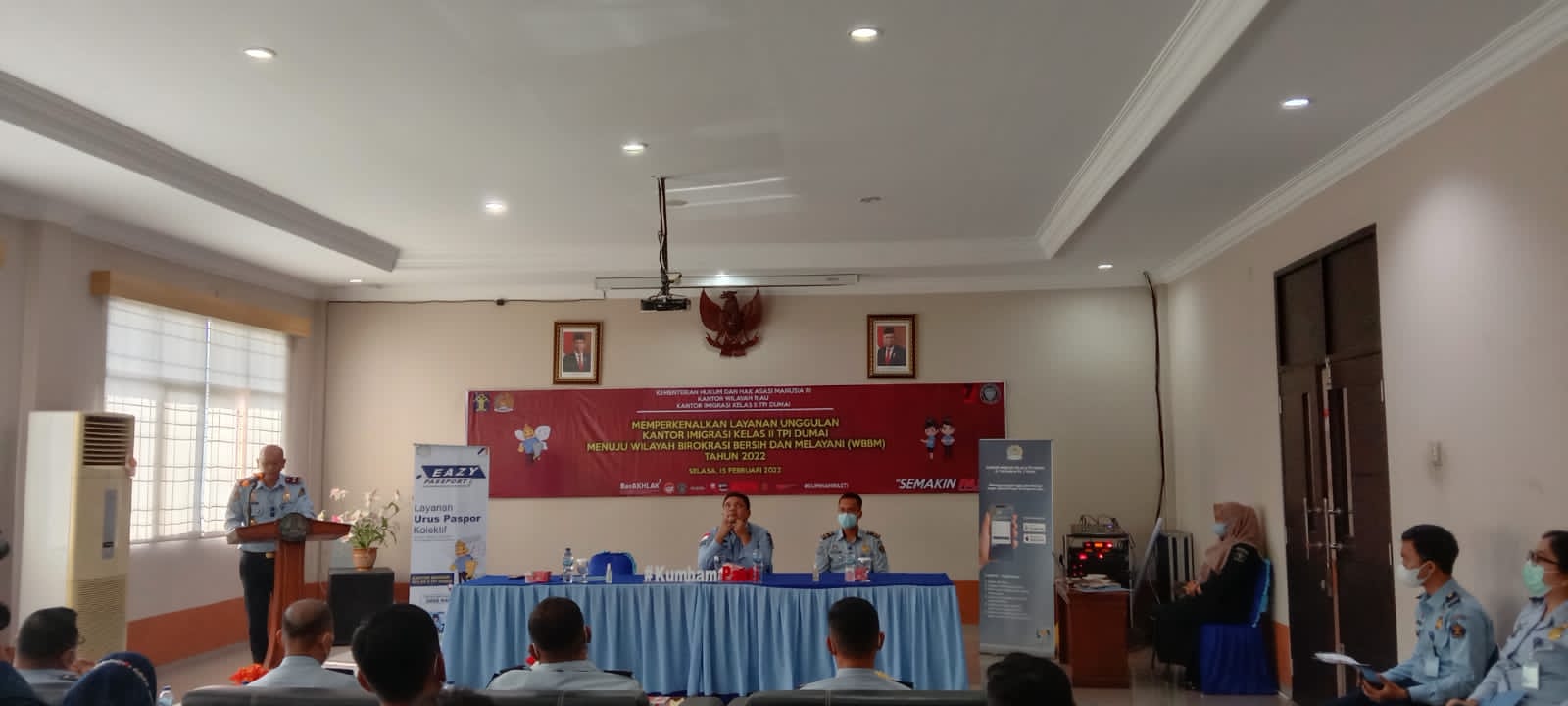 Dalam rangka acara konferensi pers, Memperkenalkan Layanan Unggulan Kantor Imigrasi Kelas II TPI Dumai, menuju wilayah Birokrasi Bersih dan Melayani yang disingkat WBBM tahun 2022.