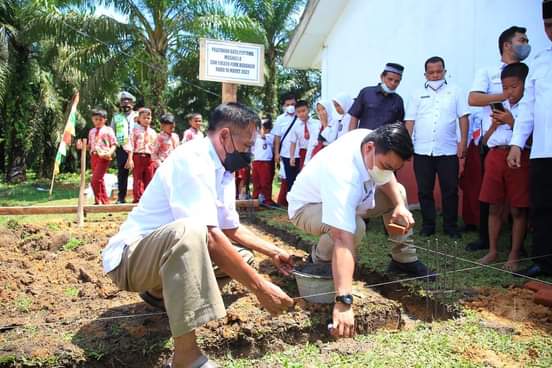 Labura ( sumut24.net ) - Bupati Labuhanbatu Utara Hendriyanto, Sitorus,SE,MM, menghadiri peresmian Musholla SDN 114620 dan peletakan batu pertama Musholla SDN 118320 sekaligus Meninjau pelaksanaan Vaksinasi Covid-19 Anak usia 6-11 tahun, rabu (16/3/2022).