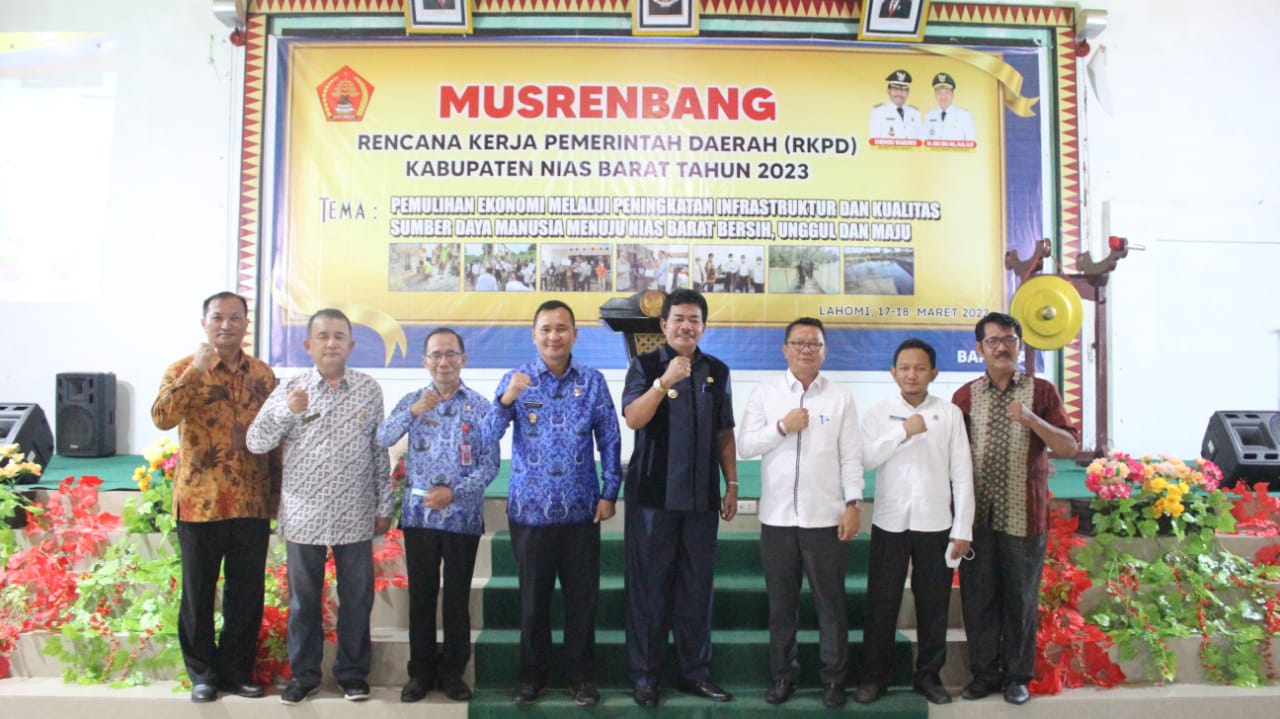 Penyusunan dokumen perencanaan pembangunan Tahun 2023, sambung Khenoki Waruwu, mempedomani RPJMD Kabupaten Nias Barat Tahun 2021-2026 yaitu percepatan pembangunan untuk meningkatkan kualitas infrastruktur, kualitas SDM serta upaya percepatan pemulihan ekonomi sehingga pemerintah mengangkat tema pembangunan Tahun 2023 "Pemulihan ekonomi melalui peningkatan infrastruktur dan kualitas sumber daya manusia menuju Nias Barat Bersih, Unggul dan Maju".