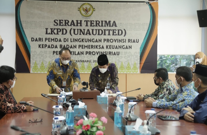 Rohul ( sumut24.net ) - H. Sukiman Bupati Kabupaten Rokan Hulu Riau , menyerahkan LKPD ( Laporan Kinerja Pemerintah Daerah ) (unaudited) kepada BPK Perwakilan Provinsi Riau tahun 2021. Jum'at (25/03/2022) yang bertempat di lantai 2 (dua) kantor BPK Perwakilan Provinsi Riau.