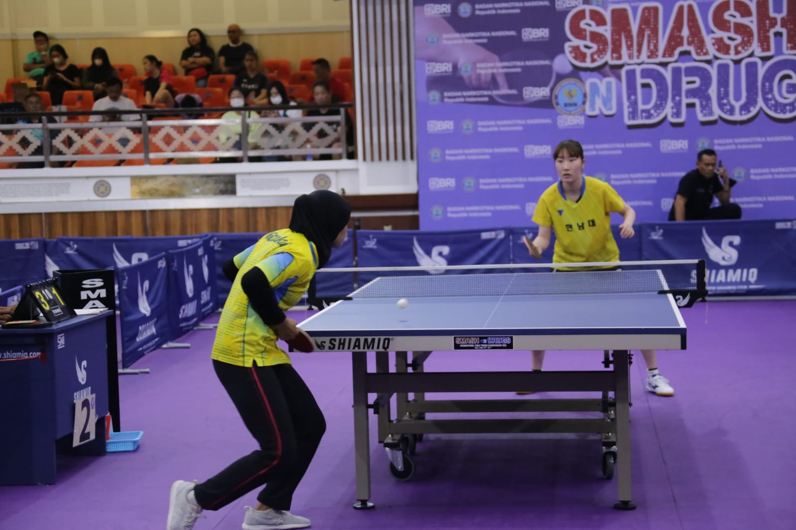 Pada partai tunggal Puteri, salah seorang atlet dari BNNP DKI Jakarta, Rina Sintya berhadapan dengan Atlet asal Korea Selatan, Lee Eun Ju, Rabu (22/6).