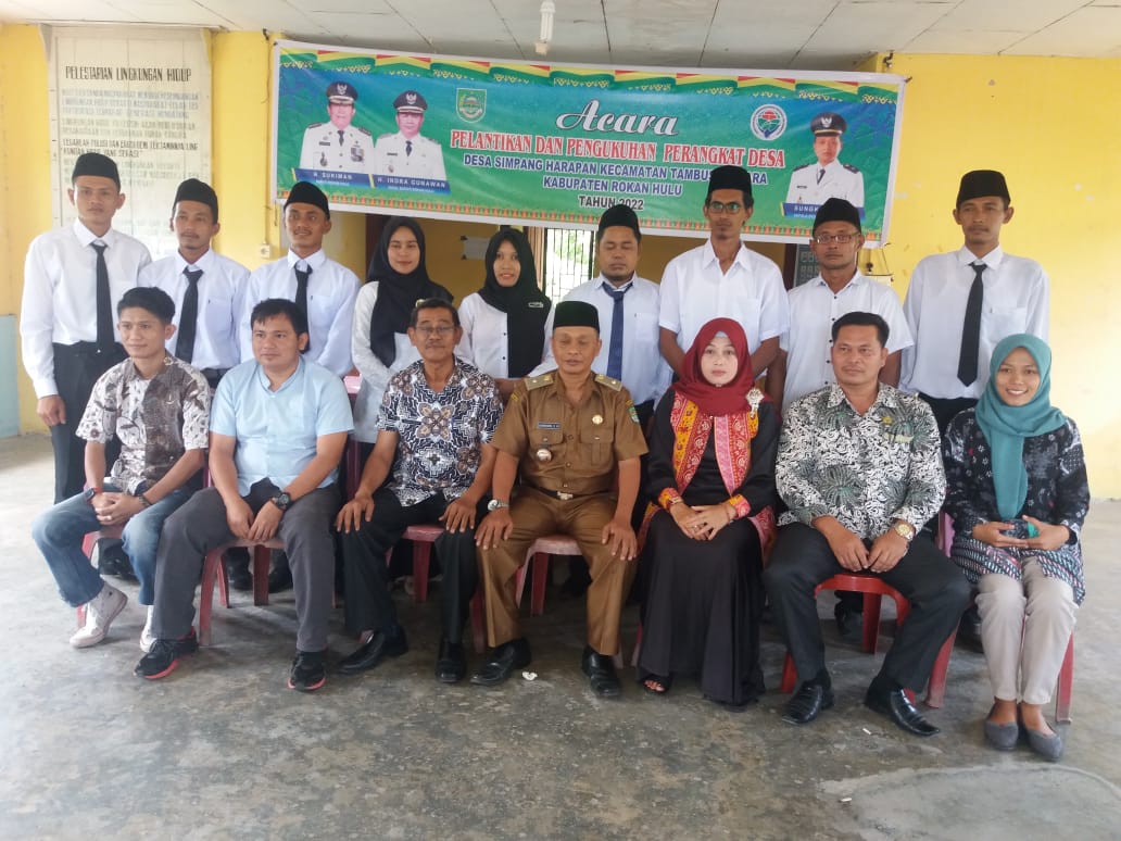 Rohul ( sumut24.net ) - Sungkono ,S.Pt Kepala Desa Simpang Harapan Tambusai Utara Rokan Hulu Riau , adakan kegiatan Pelantikan dan Pengukuhan Perangkat Desa , pada kamis ( 30/6/2022 ) pukul 10.00 wib , di ruang aula desa Simpang Harapan Tambusai Utara Rokan hulu Riau .