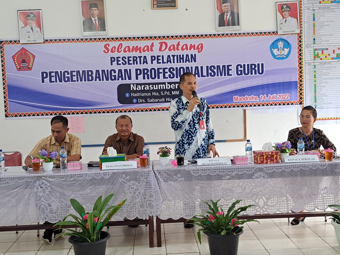 Nias Barat ( sumut24.net ) - Dalam rangka meningkatkan profesionalisme guru, UPTD SMP Negeri 1 Mandrehe menggelar Pelatihan Pengembangan Profesionalisme Guru, Kamis (14/7).