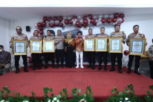Pemberian penghargaan kepada anggota Polri yang berprestasi, dihadiri Kepala Kepolisian Negara Republik Indonesia (Kapolri) Jenderal Polisi Drs. Listyo Sigit Prabowo, M.Si diwakili Kabaganev Biro PID Divhumas Polri Kombes Pol Drs. Sugeng Hadi Sutrisno.