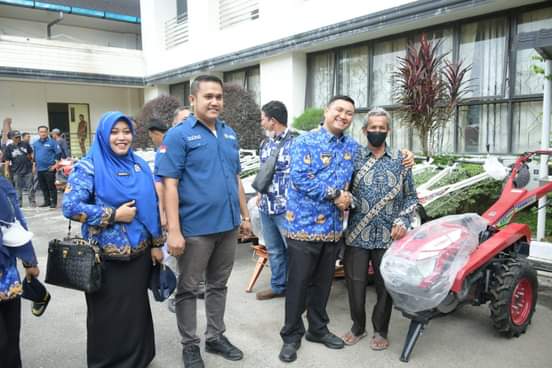 "Saya berharap dengan alsintan dan bantuan yang diserahkan ini dapat lebih memotifasi untuk mendukung ekonomi dan meningkatkan produktivitas disektor pertanian", ucap bupati.