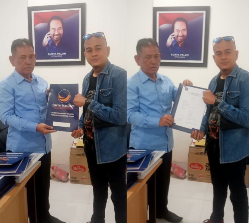 Medan ( sumut24.net ) - Ketua Umum Lembaga Masyarakat Perjuangan Sumatera Utara (Ketum MPSU) Mulya Dharmawan yang akrab sapa Mulya Koto mengambil formulir pendaftaran bakal calon legislatif (bacaleg) Partai Nasdem di Kantor DPW Jalan HM Yamin Kecamatan Medan Perjuangan, Kota Medan, Sumatera Utara.