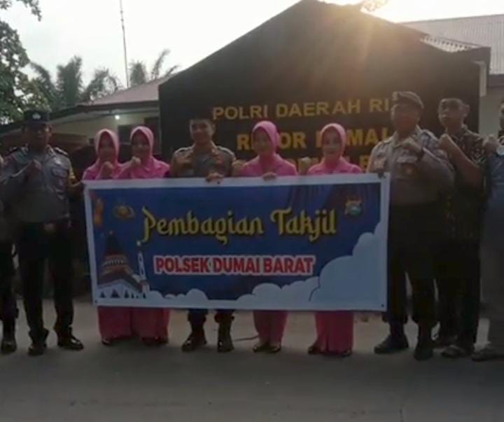 Polsek Dumai Barat Dan Ibu Bhayangkari Bagikan Takjil Ramadhan 1444H