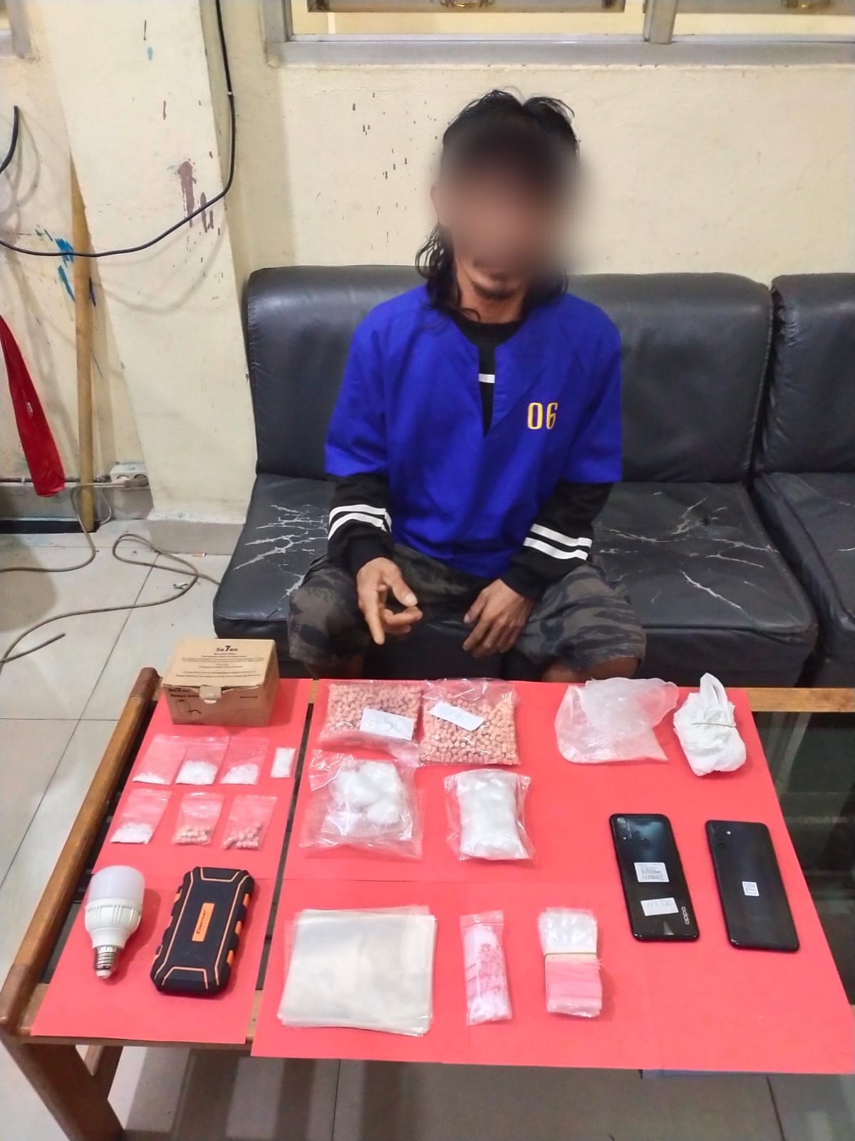 Pada hari Rabu sekira pukul 22.30 wib Tim Opsnal Sat Res Narkoba dengan didampingi dan disaksikan oleh ketua RT. setempat melakukan penangkapan dan penggeledahan ditempat kost nya tersebut, pada saat dilakukan penggeledahan ditemukan barang bukti Narkoba seperti yang disebutkan diatas.