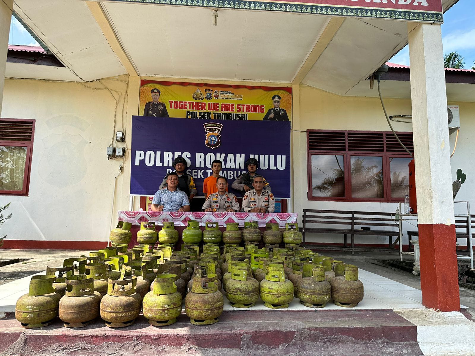 Kemudian Unit Reskrim Polsek Tambusai berangkat ke Muara Rumbai dan mengamankan sebanyak 50 Tabung Gas LPG Kosong.