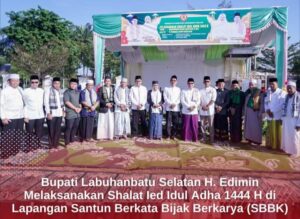 Labusel ( sumut24.net ) - Bupati Labuhanbatu Selatan H. Edimin melaksanakan shalat Ied Idul Adha 1444 H di Lapangan Santun Berkata Bijak Berkarya (SBBK), kamis (29/06/23).