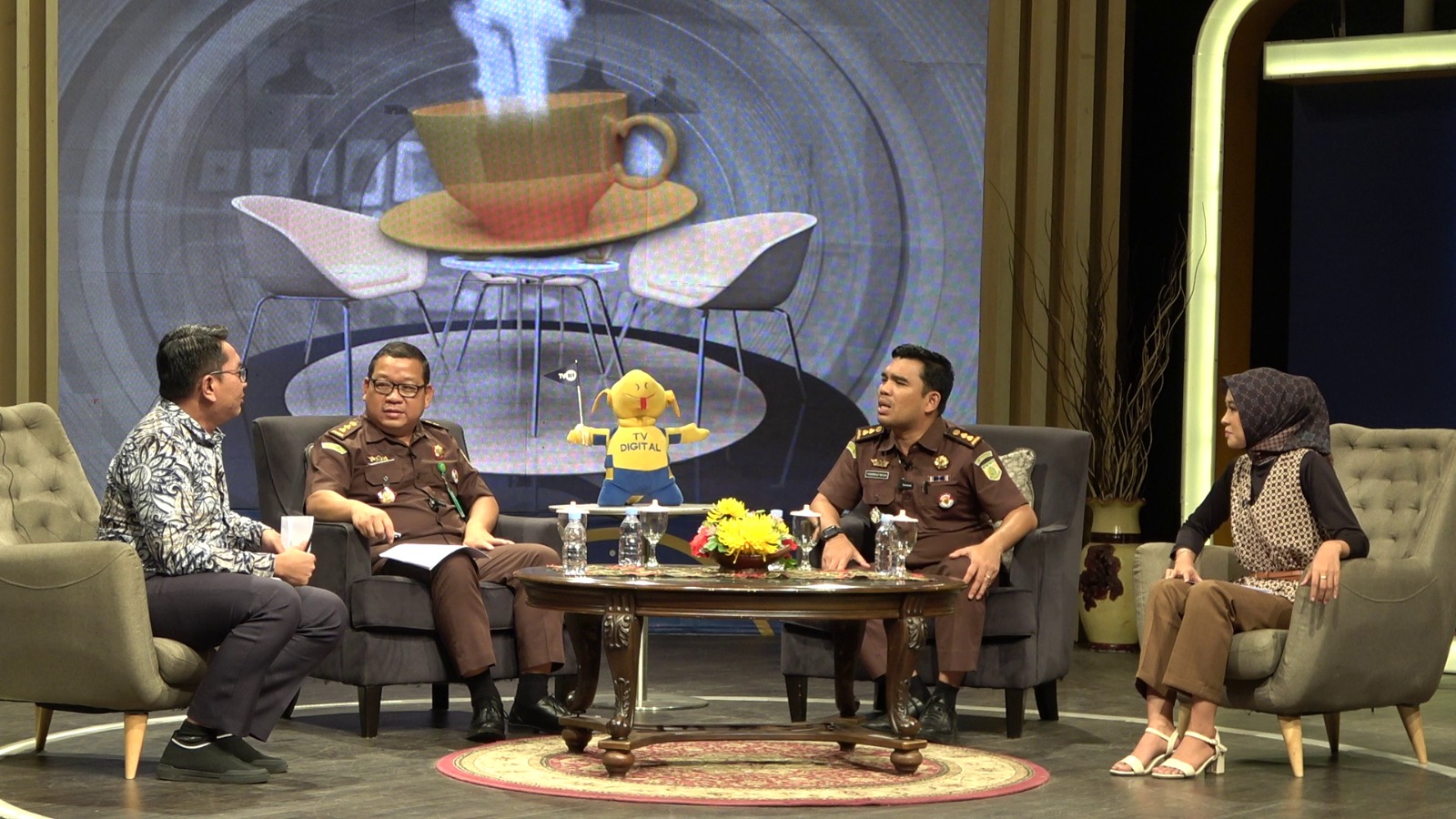 MEDAN ( sumut24.net ) - Jadi narasumber dalam acara Markombur di Lembaga Penyiaran Publik (LPP) TVRI Sumut, Kajati Sumut Idianto,SH,MH yang diwakili Koordinator Bidang Intelijen Nanang Dwi Priharyadi, SH, MH dan Kasi Penkum Yos A Tarigan, SH, MH mengusung topik tentang "Jaksa Peduli Disabilitas' dan dipandu host Nur Hasanah dan Putra Andica Siagian yang disiarkan secara live, Rabu (23/8/2023).