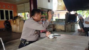 Sampaikan Pesan Kamtibmas , Kapolsek Sungai Kanan AKP.P.Hutasuhut Ngopi Bareng Warga Di Warkop Simpang Kombet