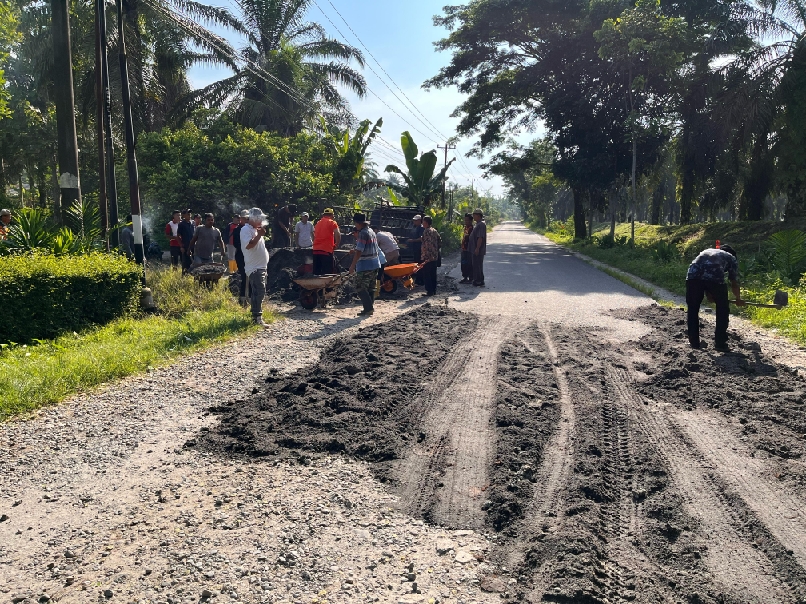 ASAHAN ( sumut24.net ) - Masyarakat Desa Bandar Pasir Mandoge, Kecamatan Bandar Pasir Mandoge, Kabupaten Asahan, Propinsi Sumatera Utara Gotong Royong untuk membenahi jalan Proinsi di dua (2) di Desa tersebut.