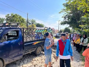 Irwadi, Kepala Desa telah menyumbangkan dari kantong pribadi sendiri untuk membeli bahan material batu padas empat (4) truk Colt Diesel untuk menutupi jalan yang berlobang lobang dilokasi jalan lintas atau jalan propinsi tersebut.