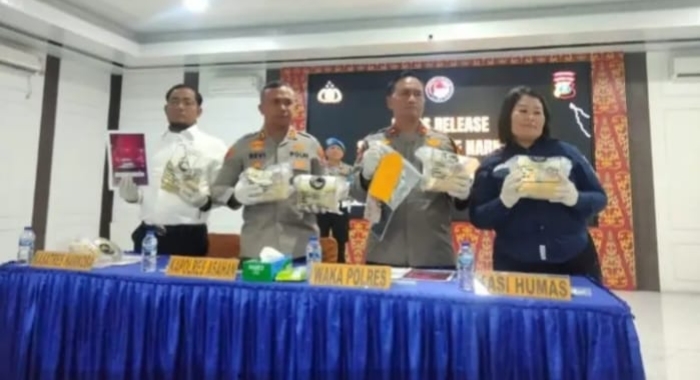 Tersangka berinisial DS (32), seorang sopir wiraswasta asal Kota Pekanbaru, diamankan saat mengendarai mobil. Dari hasil penggeledahan, petugas menemukan 8 bungkus plastik berwarna kuning bertuliskan “Guan Yin Wang” yang diduga kuat berisi narkotika jenis sabu dengan berat brutto mencapai ± 8.000 gram. Barang haram tersebut disembunyikan di bagian pintu kendaraan yang dikemudikan tersangka.